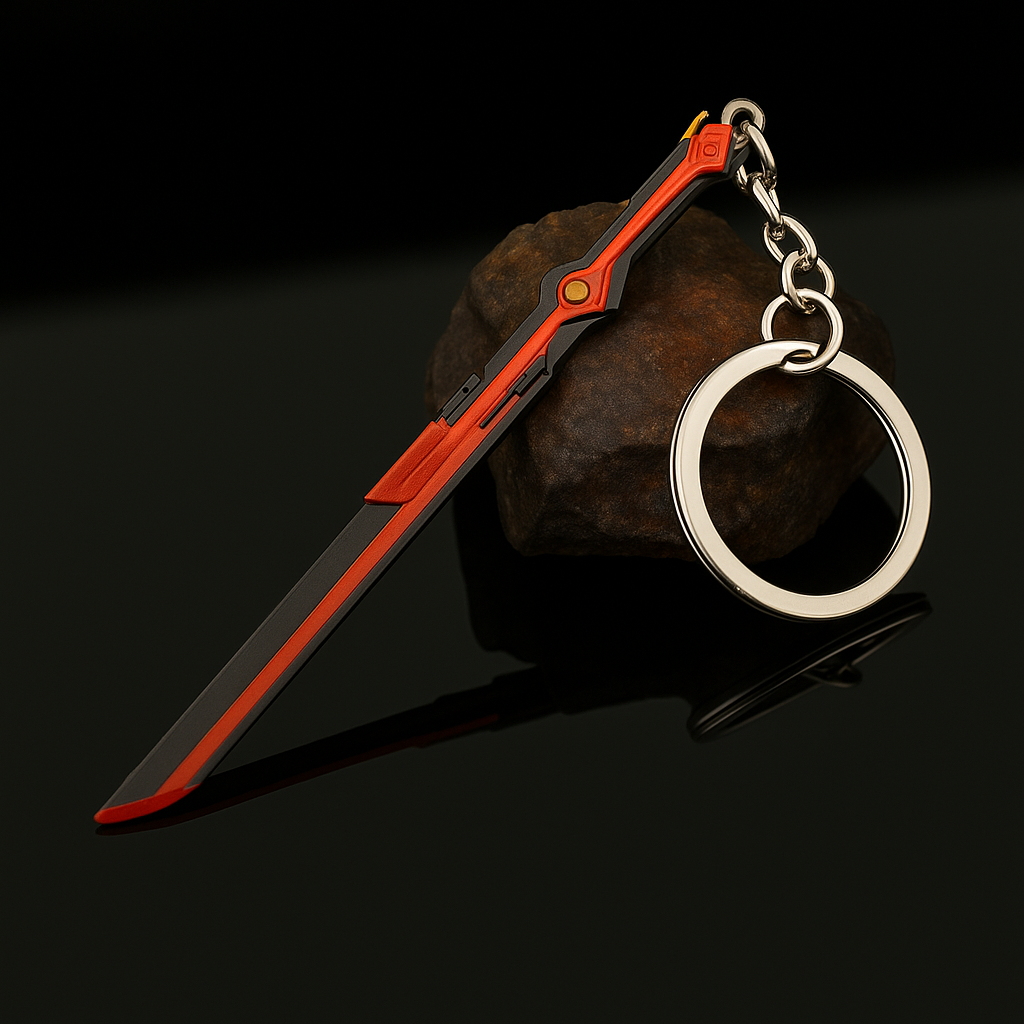 Overdrive Lame — porte-clé réplique réaliste inspirée de Valorant. Design dynamique et détaillé, finitions soignées. Longueur : 9 cm.
